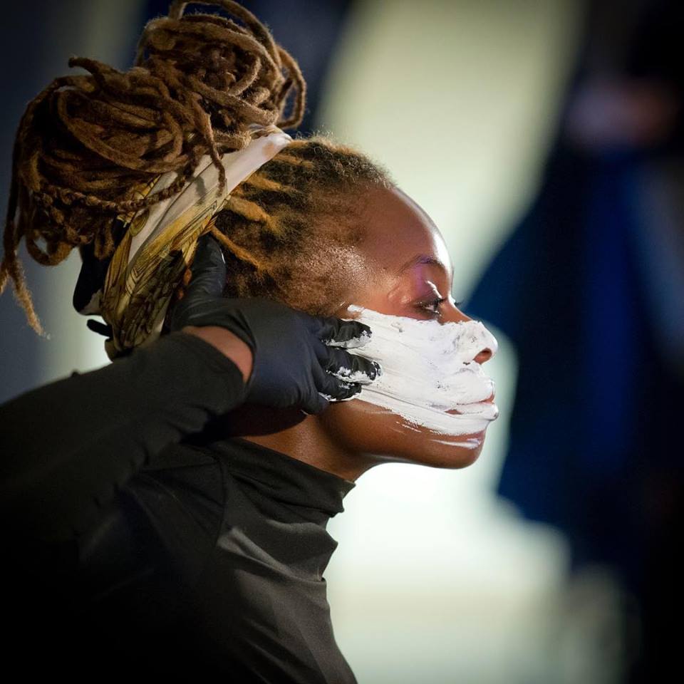 Adelaide Damoah performed her new concept #MYFACE as a part of the Visual Diet opening exhibition with MTArt Agency in collaboration with MC Saatchi London and photographer Rankin.